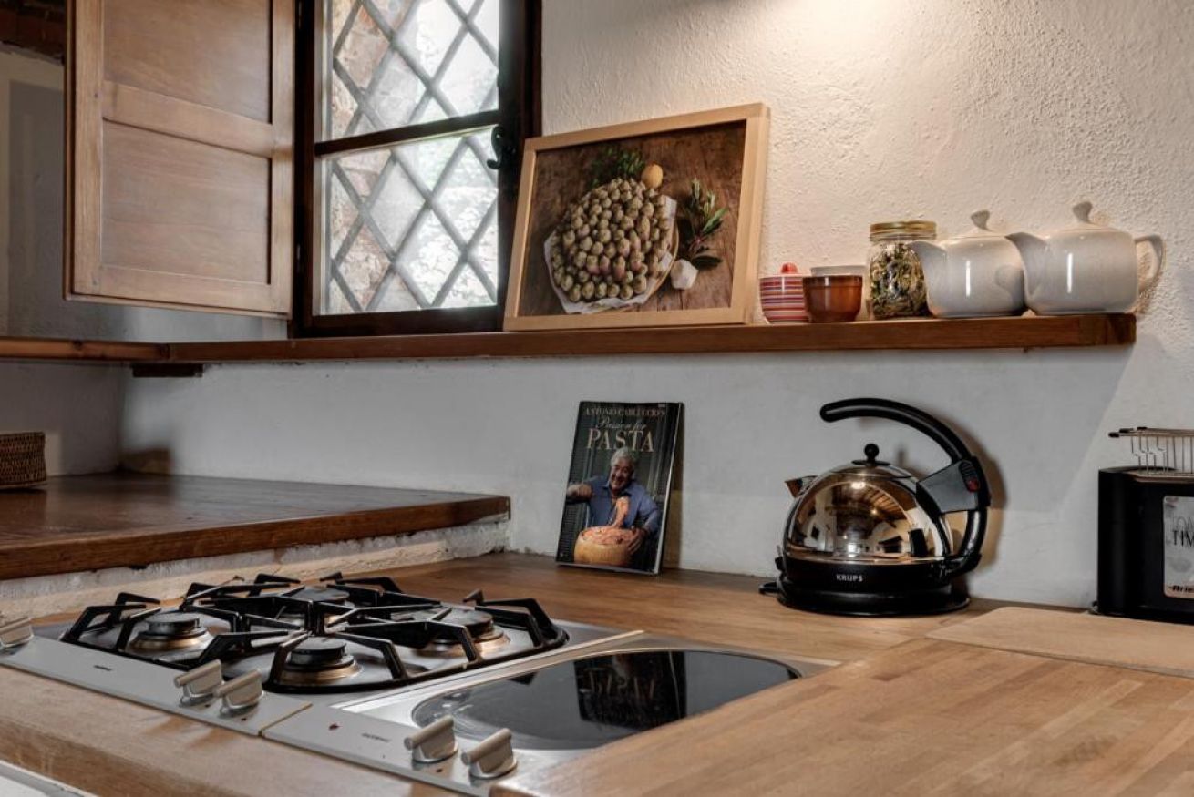 L'appartamento trilocale di 100 m2 con ampio giardino ed arredato in stile toscano, è cosi composto: area soggiorno con divano letto e tv, zona pranzo con tavolo e sedie ed una cucina abitabile completa di tutti i comfort.