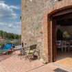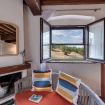 Completa la struttura un patio esterno con vista panoramica, attrezzato di ombrellone, lettini prendisole, tavolo e sedie.