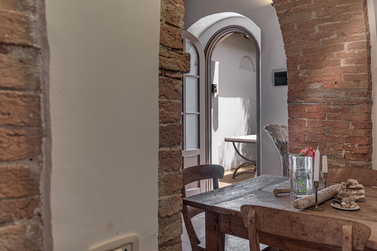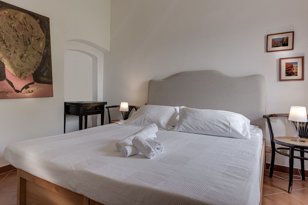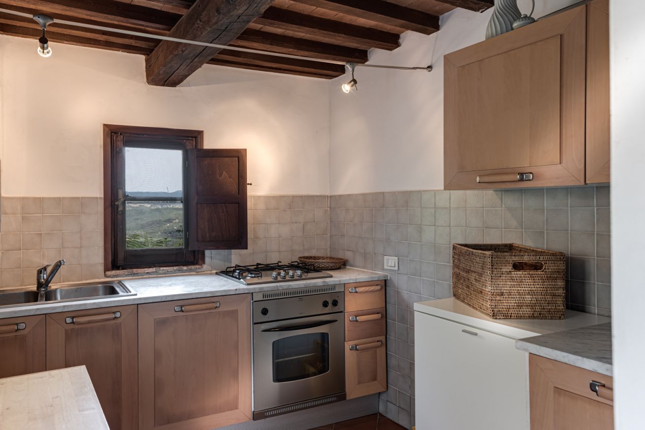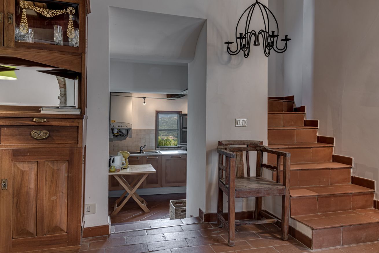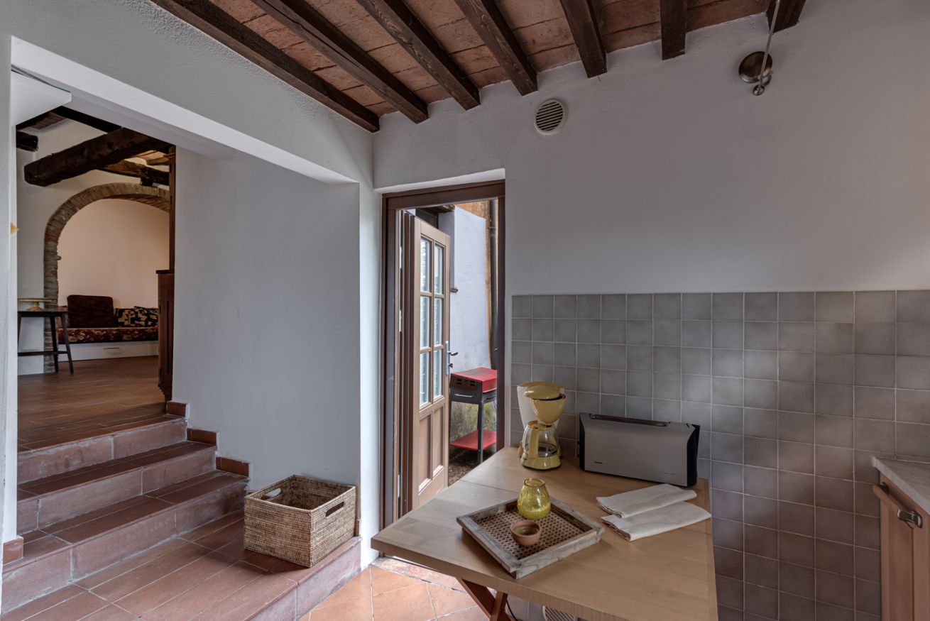 È situato ad una delle estremità dell’antico borgo medievale, distaccato dagli altri appartamenti ed ha un giardino privato ad uso esclusivo dei suoi ospiti con una vista mozzafiato sulla vallata del fiume Ombrone.
